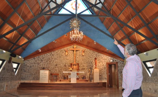 Además, durante el proceso se ha cuidado hasta el mínimo detalle, ya que el templo y sus alrededores están cargados de simbología: la lámpara que se encuentra sobre el altar tiene doce luces representando a los doce apóstoles, en la entrada, a mano derecha, se ha colocado un olivo que se ilumina por las noches, representando la Trinidad, y a su lado se ha instalado una fuente adornada con piedras que se han recuperado del antiguo altar, “además, el agua es vida”, señala Santiago García.