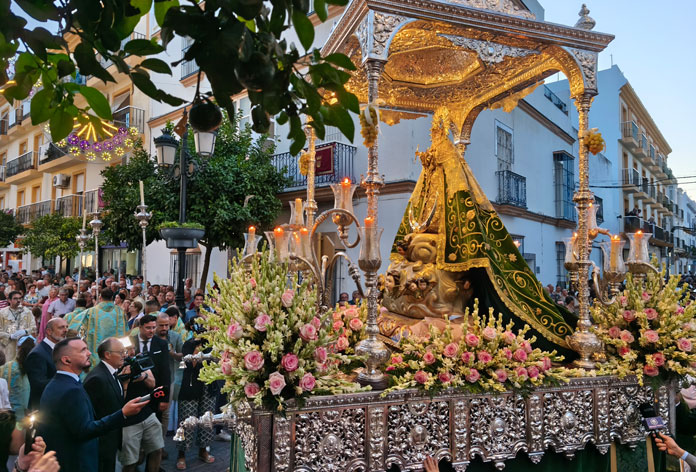 Un recorrido en el que el paso de la Patrona estuvo arropado por numerosas personas que desde las 20:30 horas llenaron las calles del centro de Chiclana, acompañándola durante todo el trayecto.