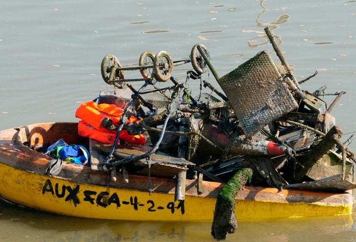 La limpieza del cauce, que sí es más extraordinaria porque es a bordo de una barcaza de estero de poco calado, comenzó la última semana de mayo y se extendió hasta el 12 de junio. En este sentido, Sergio Flores ha señalado que ·el personal de a bordo va retirando residuos cuando baja la marea para poder localizar los restos sumergidos. De esta manera también podemos llegar a todos los rincones”. El tramo que cubren con esta embarcación tiene una extensión lineal de aproximadamente 2,5 kilómetros, que va desde el puente de la Concordia hasta la estación de aguas residuales de El Torno.
