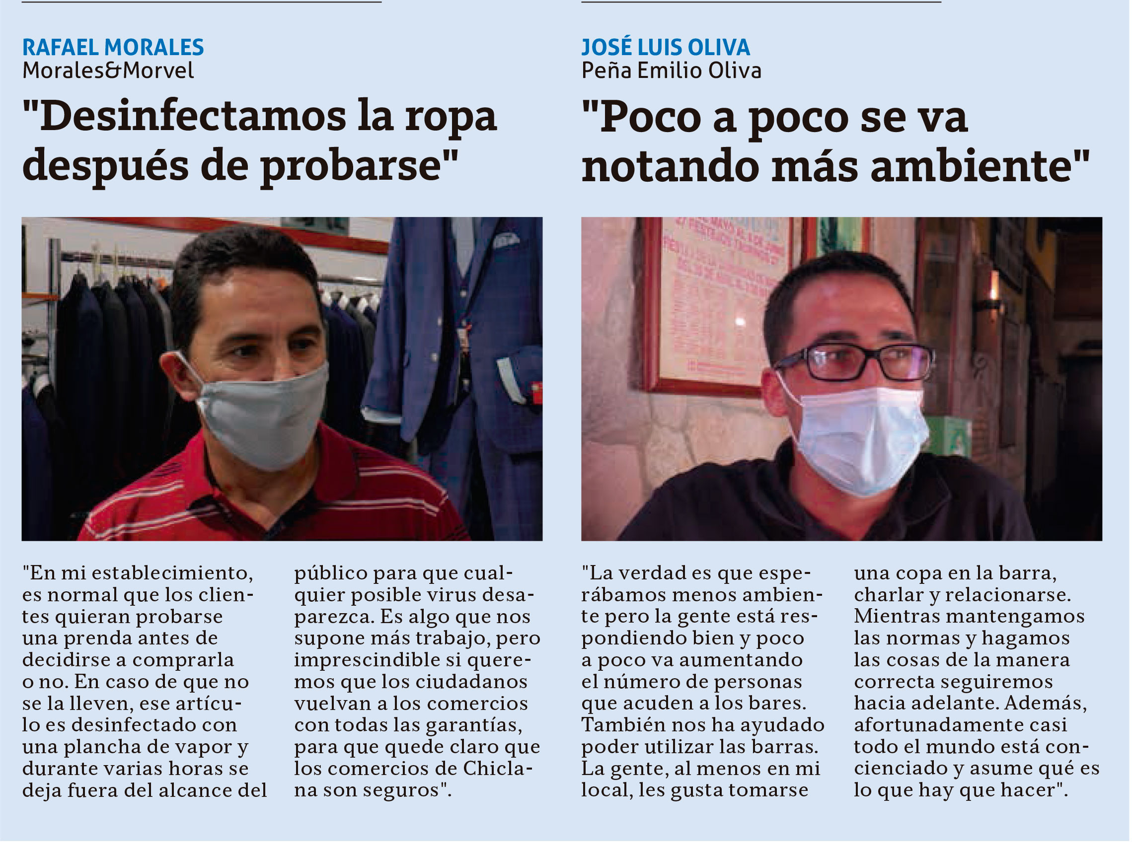 Asimismo este comerciante ha señalado que «poco a poco parece que la gente se está animando a acudir a los comercios». En este sentido,ha añadido que «hay comercios que están teniendo una reentrada más fácil que otros, ya que la suspensión de eventos como la feria, comuniones y bodas ha traído una consiguiente pérdida de posibles ventas a los establecimientos que concentran gran parte de sus ventas en estas ocasiones».