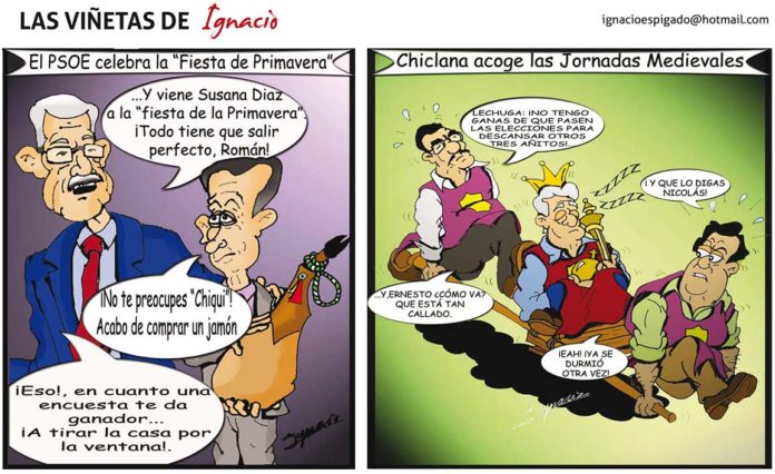 InicioLas viñetas de ignacio Las viñetas de ignacio mayo 7, 2015 0 1507 Cuota FacebookTwitterPinterestWhatsApp TagsIgnacio Espigado. opiniónviñetas Cuota FacebookTwitterPinterestWhatsApp Artículo anteriorOcho años en femeninoArtículo siguienteAdorado atún rojo de almadraba Redacción ARTÍCULOS RELACIONADOS Opinión Diez años del Foro de Turismo marzo 12, 2026 Actualidad La Fiesta del Gazpacho Caliente llega este sábado a la Alameda del Río marzo 12, 2026 Actualidad El Foro de Turismo entrega sus Premios Especiales marzo 12, 2026 MÁS POPULAR Diez años del Foro de Turismo marzo 12, 2026 La Fiesta del Gazpacho Caliente llega este sábado a la Alameda del Río marzo 12, 2026 El Foro de Turismo entrega sus Premios Especiales marzo 12, 2026 La almadraba de Sancti Petri más cerca de ser una realidad marzo 12, 2026 Cargar más COMENTARIOS RECIENTES Elisabeth en Lactancia Materna Saludable Jesús “Ñuku” en Siempre con nosotros Sondeaquí en Román: «Chiclana saldrá muy reforzada de la pandemia» Adrián en Enero de 1848. Un aeronauta en Chiclana Francisco en Tecnología para conocer el estado de nuestras playas Pedro Miguel Ortega Mateos en El comercio local se prepara para la campaña de Navidad Pedro Miguel Ortega Mateos en Una ciudad abierta Volker Eschweiler en Paulaner elige Chiclana para la mayor Oktoberfest de Andalucía Jose luis en El río Iro: su limpieza y las mareas Mercado de Santa Ana - Chiclana será pionera en la Bahía en tener un mercado gastronómico en Chiclana será pionera en la Bahía en tener un mercado gastronómico “Un reconocido chef al frente del nuevo Atenas Paseo” | Atenas Paseo en Un reconocido chef al frente del nuevo Atenas Paseo