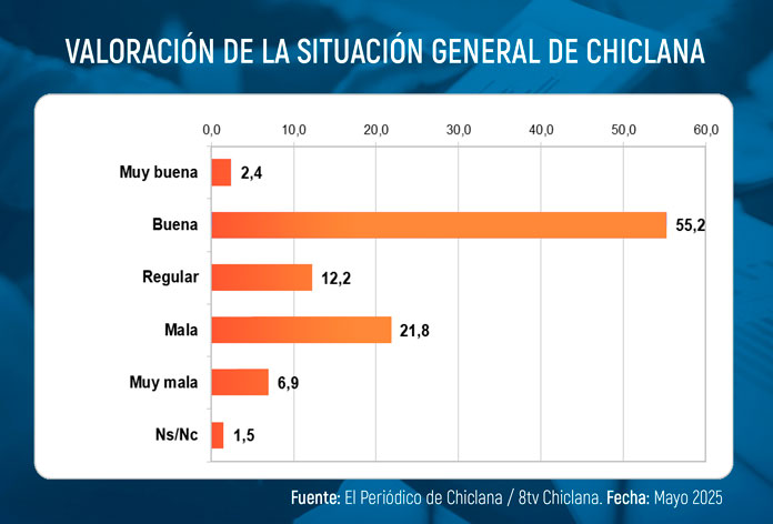El 57,6 por ciento de los chiclaneros tiene una percepción positiva de la situación general de la ciudad, según se recoge en el estudio demoscópico que 8TV y El Periódico de Chiclana han realizado sobre la opinión de los chiclaneros y chiclaneras.