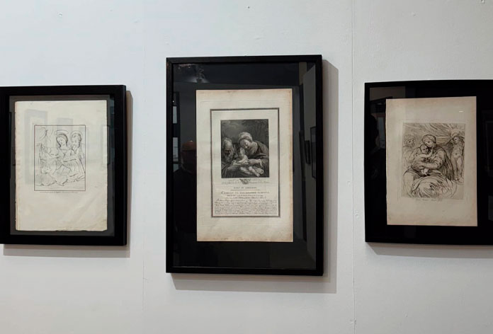 Algo de ello tiene esta nueva Exposición Temporal, pues una buena parte de las obras ahora expuestas -treinta grabados originales en total que van del siglo XVII al XX- traducen (aguafuerte, talla dulce, litografía, etc.) a lenguaje de la estampa conocidas obras de artistas señeros tales como Ghirlandaio , Perugino, Juan de Juanes, Bernardino Luini, Rafael Sanzio, Andrea del Sarto, Guercino, Veázquez, Murillo, Carlo Dolci o Carlo Maratti, entre otros. Entre los traductores, algunos grabadores también de primera de los que destacamos, entre los nuestros, la excelencia de algunos como Blas Ametter -que en el siglo XVIII participó en algunas de las mejores empresas artísticas que, vinculadas al grabado, se llevaron a cabo en el horizonte de la Ilustración- o la exquisita belleza de línea limpia de grabadores como Pi y Margall. Entre los extranjeros, nombres tan relevante -y hay más- como los de Petrus Aquila, Brunetti o Massard.