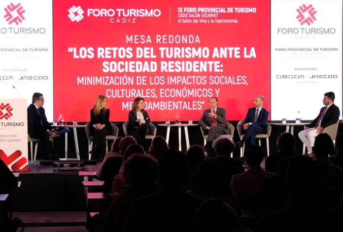 De esta manera y tras la entrega del Premio Especial del Foro a la chef Pepa Muñoz, quien ha recibido el Premio por su labor solidaria a través de la Fundación World Central Kitchen, tuvo lugar la primera mesa redonda, titulada “Los retos del turismo ante la sociedad residente: Minimización de los impactos sociales, culturales, económicos y medioambientales”, que contó con la participación de José María Román, alcalde de Chiclana; Carlos García, alcalde de Grazalema; Javier Rodríguez, presidente de la Mancomunidad de La Janda; Elisa del Valle, directora de Planificación y Estrategia de la Diputación de Cádiz; y Elena Baena, directora general de Ordenación Turística de la Junta de Andalucía. Moderada por José Antonio Medina, la mesa abordó el equilibrio entre el crecimiento turístico y la sostenibilidad.