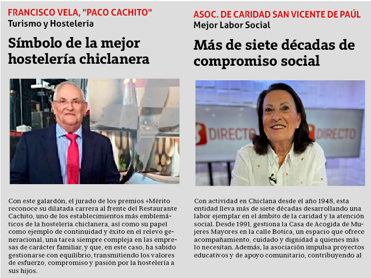 Por noveno año consecutivo, El Periódico de Chiclana y 8 TV Chiclana entregarán el próximo 9 de diciembre los premios +Mérito con los que pretende reconocer públicamente la entrega, el trabajo y el compromiso social de aquellas empresas, colectivos, entidades y profesionales que contribuyen desde sus respectivos ámbitos de actuación al crecimiento de Chiclana.