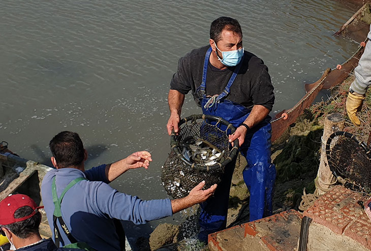 Una actividad gastronómica y comercial que se enmarca en el Mes de los Esteros, organizado por Diputación. De esta forma, los trabajadores de Manguita se encargaron de las labores del despesque tradicional en los esteros, de cara al consumo o compra del producto capturado por las personas que visiten las instalaciones de Marisquería Manguita en la calle Doctor Pedro Vélez.